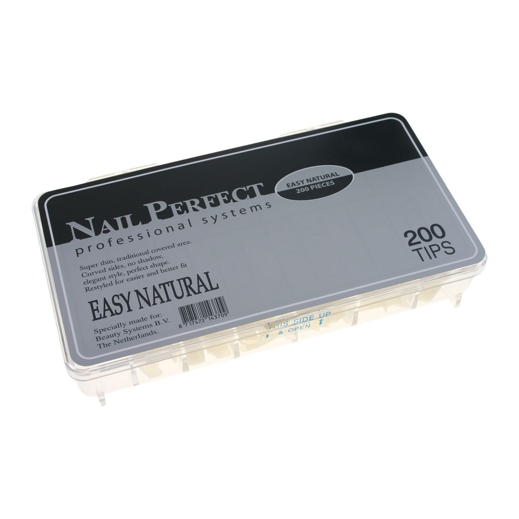 The Easy Natuarl tips are top quality and durable tips developed from the best "virgin" plastics as a result of which they will not split. Perfect color and fit for every nail. The Easy Natural Tips have no well and a natural smileline. Due to the fact that there is no well present, one has control over exactly where the tip is placed to suit every nail type. Minimal blending necessary.