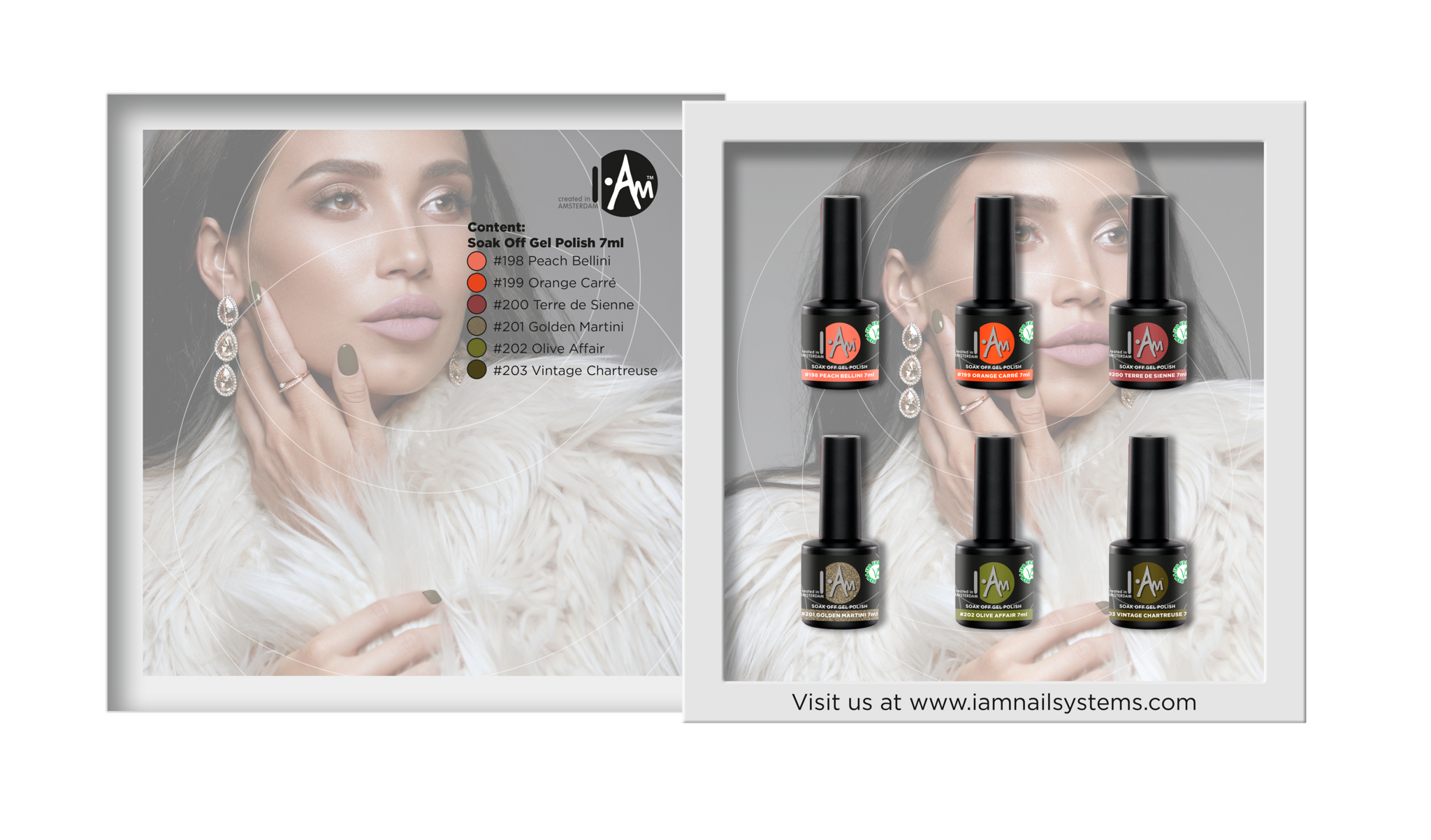 Het is tijd om kleur naar een hoger niveau te tillen. I.Am Soak Off Gel Polish biedt de nagelprofessional een primaire of aanvullende service. I.Am Soak Off Gel Polish wordt geleverd met een primair kleurenpalet van 121 modieuze kleuren. I.Am Soak Off Gel Polish is een oplosmiddelvrije UV/LED-gel met de perfecte viscositeit voor eenvoudige applicatie in dunne lagen, waardoor overtollig volume wordt verminderd. Deze sterk gepigmenteerde formule biedt keer op keer kleurconsistentie.